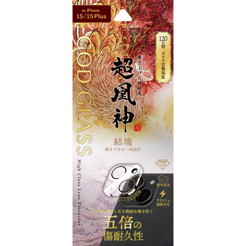 iPhone 15/iPhone 15 Plus レンズ保護ガラスフィルム「GOD GLASS 超凰神」 結塊 超透明