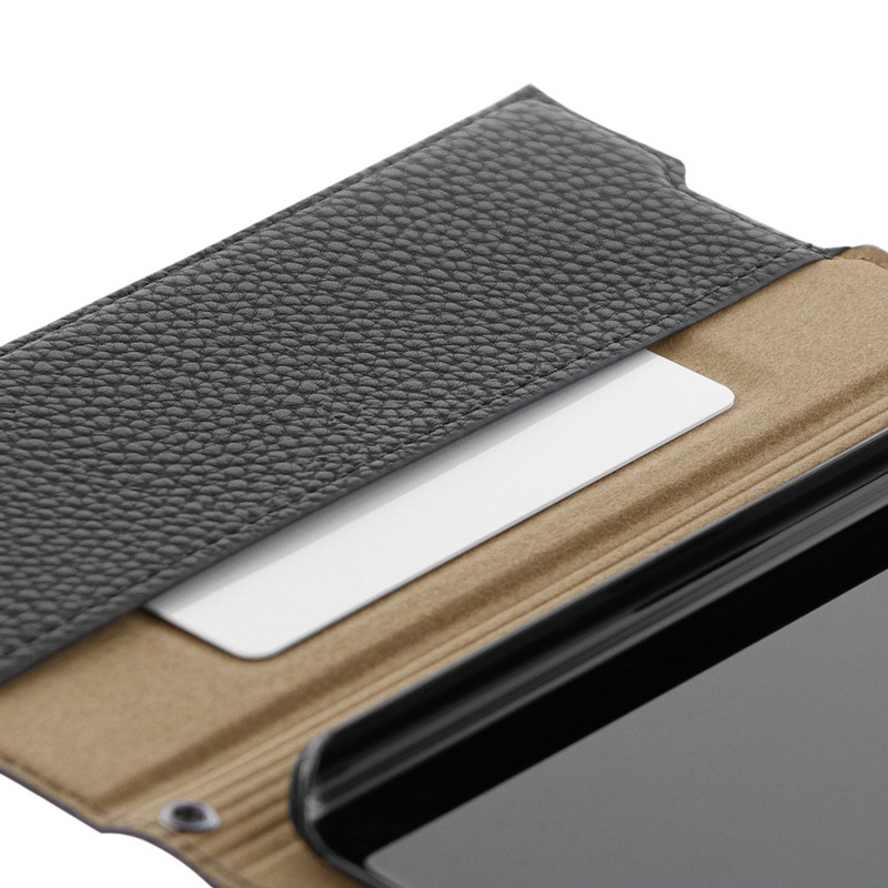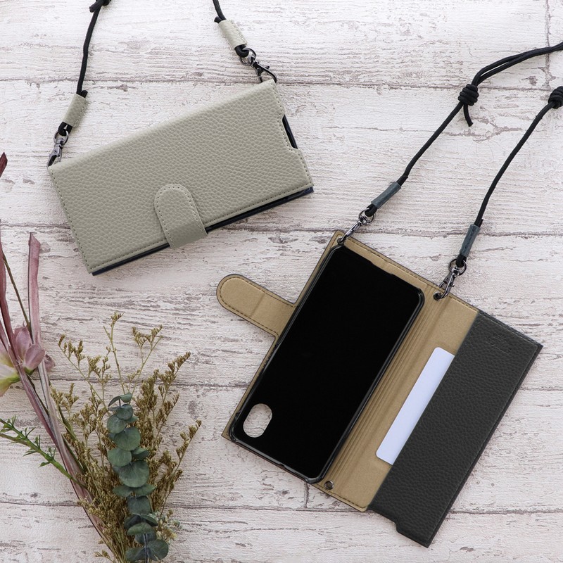 本革のような風合いのレザーと丁寧な縫製が格調高さを醸し出すフラップケース/便利なカード収納(1枚)/ピタッと固定できるマグネット仕様/軽量PCケース採用/側面、底面に装着できるストラップホール搭載/長さ調整機能付「ショルダーストラップ」付属