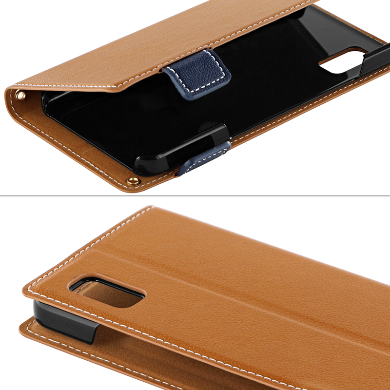 サイドベルトがバイカラーになった遊び心ある手帳型ケース/ピタッと固定できるマグネット仕様/すぐ取り出せて嵩張らないカード収納ポケット(1枚)/動画視聴に最適なスタンド機能/ショルダーストラップが使える2つのホール搭載