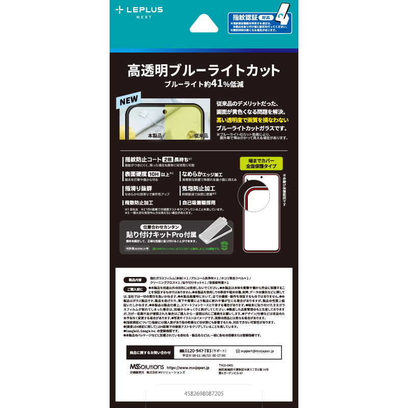 【貼り付けキットPro付属:特許取得済 第6693623号】【指紋認証対応】極薄0.25mm/超硬度10H表面強化ガラス/すべてガラス素材で全面保護/指紋防止効果2倍持続/黄色くならないブルーライトカット/ブルーライト約41%カット/高透明/アルコール洗浄布・ホコリ除去ラベル・クリーニングクロス付属