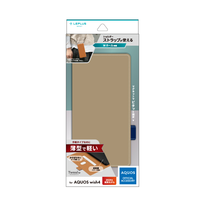 AQUOS wish4 SH-52E 薄型・軽量PUレザー手帳ケース 「Twoal W」 ベージュ
