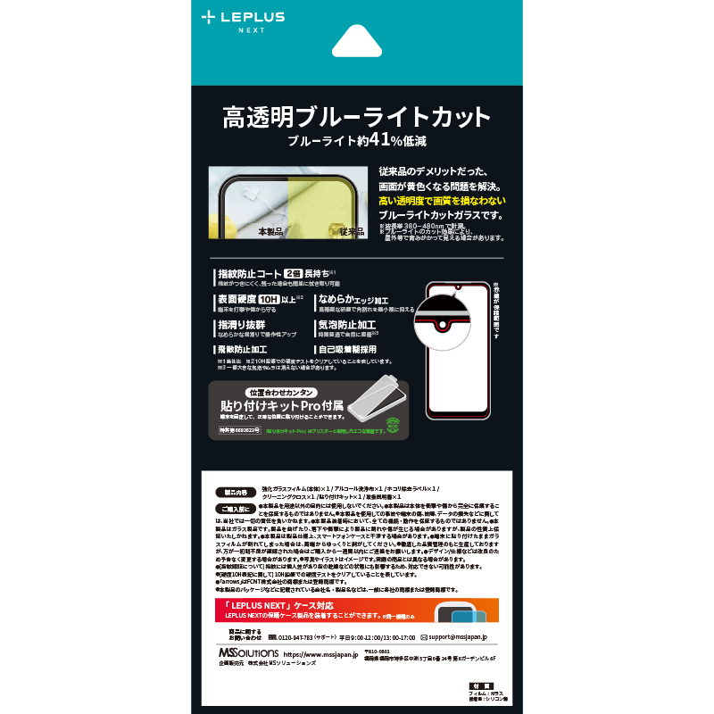 【貼り付けキットPro付属:特許取得済 第6693623号】超硬度10H表面強化ガラス/指紋防止効果2倍持続/黄色くならないブルーライトカット/ブルーライト約41%カット/高透明/アルコール洗浄布・ホコリ除去ラベル・クリーニングクロス付属
