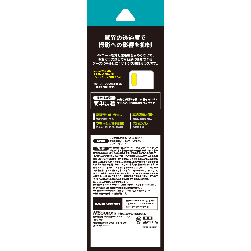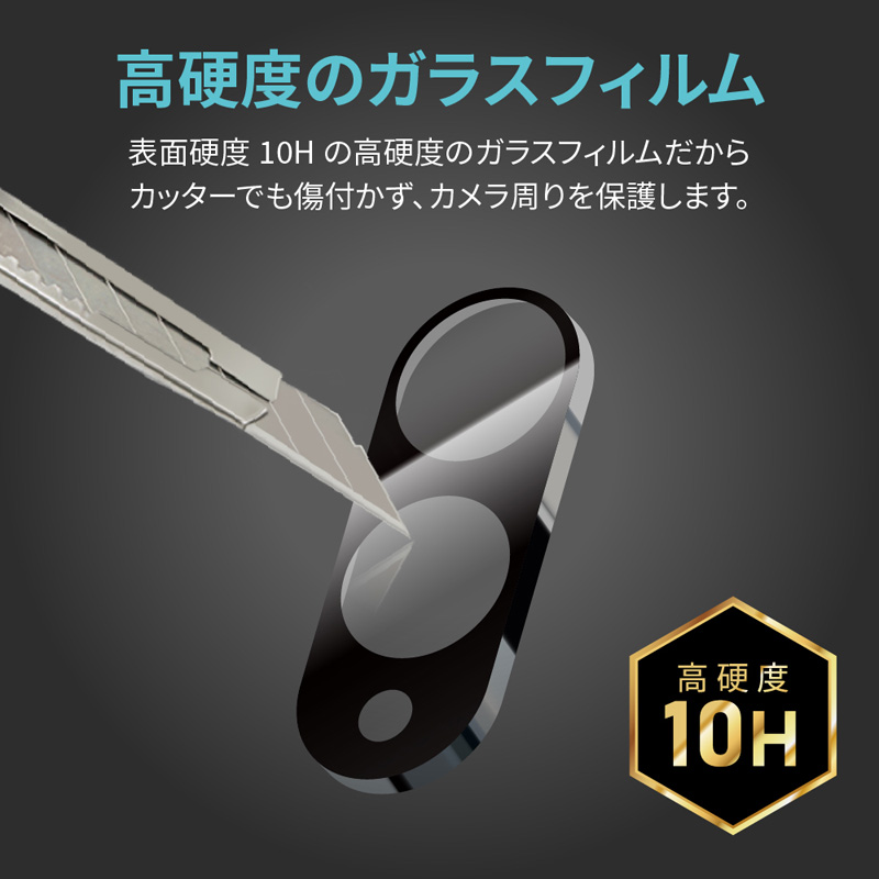 カメラレンズ周りまで保護するガラスフィルム/超硬度10H表面強化ガラス/アンチリフレクション加工を施し撮影に最適な透過度約95%/アルコール洗浄布・クリーニングクロス付属