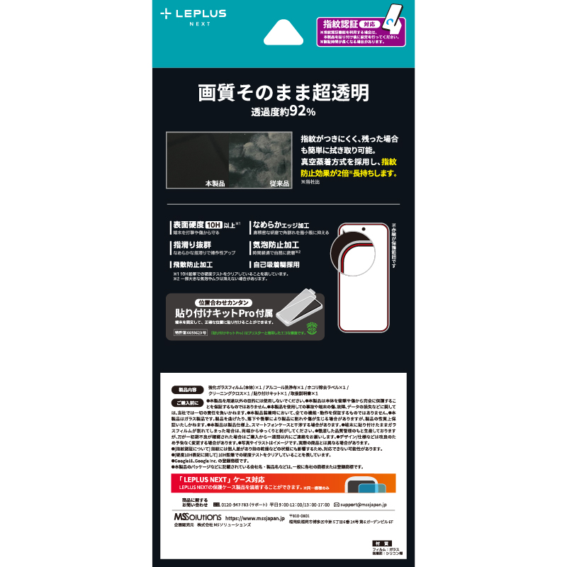 【貼り付けキットPro付属:特許取得済 第6693623号】【指紋認証対応】超硬度10H表面強化ガラス/指紋防止効果2倍持続/驚異的な透明度/アルコール洗浄布・ホコリ除去ラベル・クリーニングクロス付属