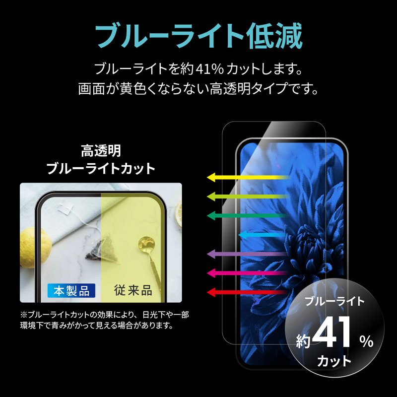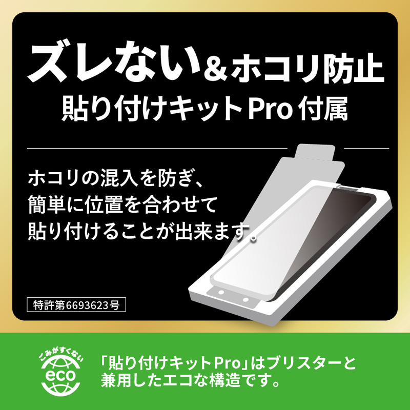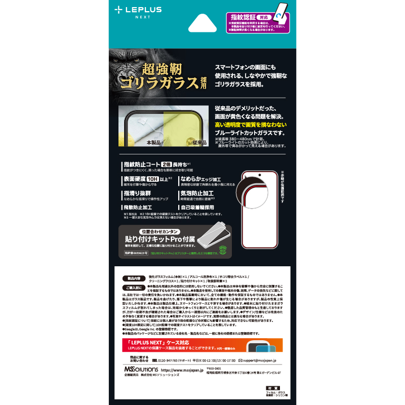 【貼り付けキットPro付属:特許取得済 第6693623号】【指紋認証対応】しなやかで強靭なゴリラガラスを採用/超硬度10H表面強化ガラス/指紋防止効果2倍持続/黄色くならないブルーライトカット/ブルーライト約41%カット/高透明/アルコール洗浄布・ホコリ除去ラベル・クリーニングクロス付属