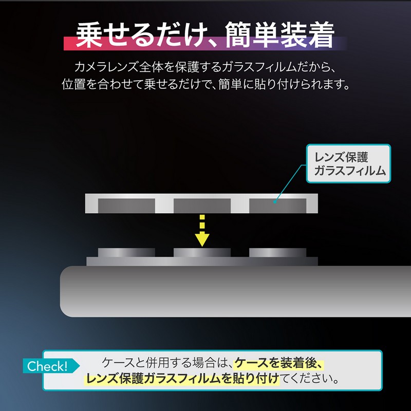 カメラ全体を保護するガラスフィルム/超硬度10H表面強化ガラス/異的な透過率約95%/アルコール洗浄布・クリーニングクロス付属