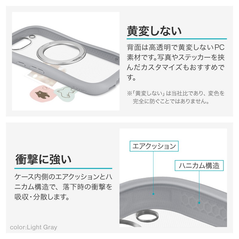 【60日間保証】【耐衝撃】360度回転&スタンドになるリングを搭載/磁気アクセサリ対応/衝撃を吸収・分散するハニカム構造のTPUと、割れにくく軽量なPCのハイブリッドケース/側面全体がなめらかにラウンドした持ちやすいデザイン/ボタン周りを保護/ストラップホール搭載(側面)/ショルダーストラップの取り付けに最適な「挟み込みシート」付属