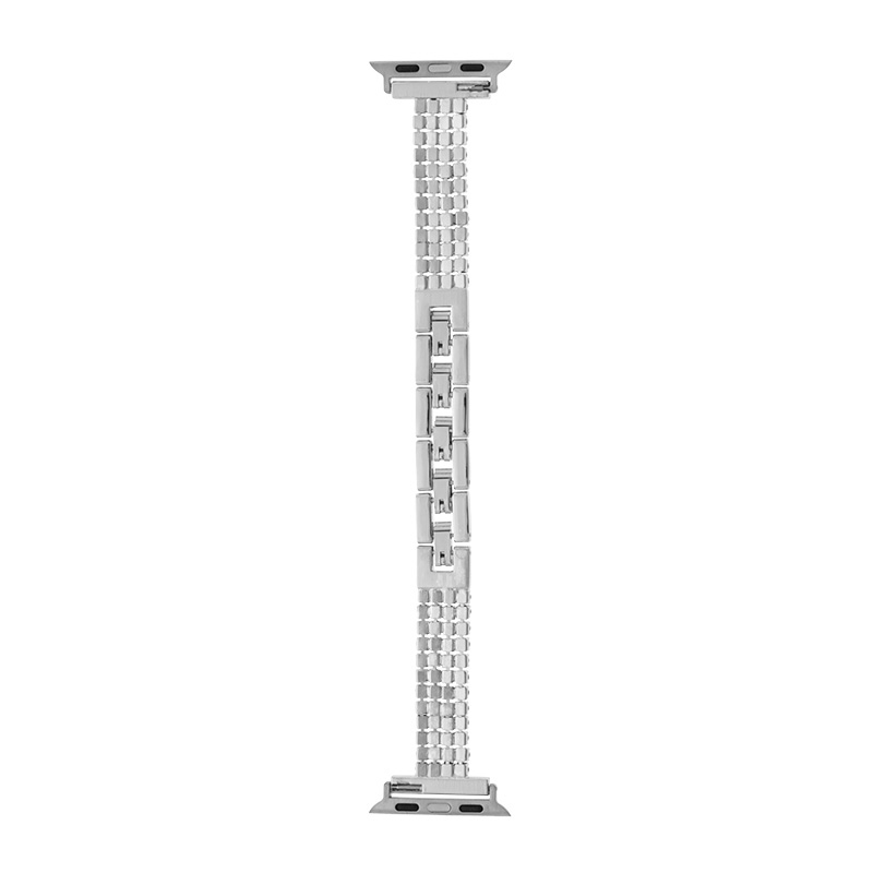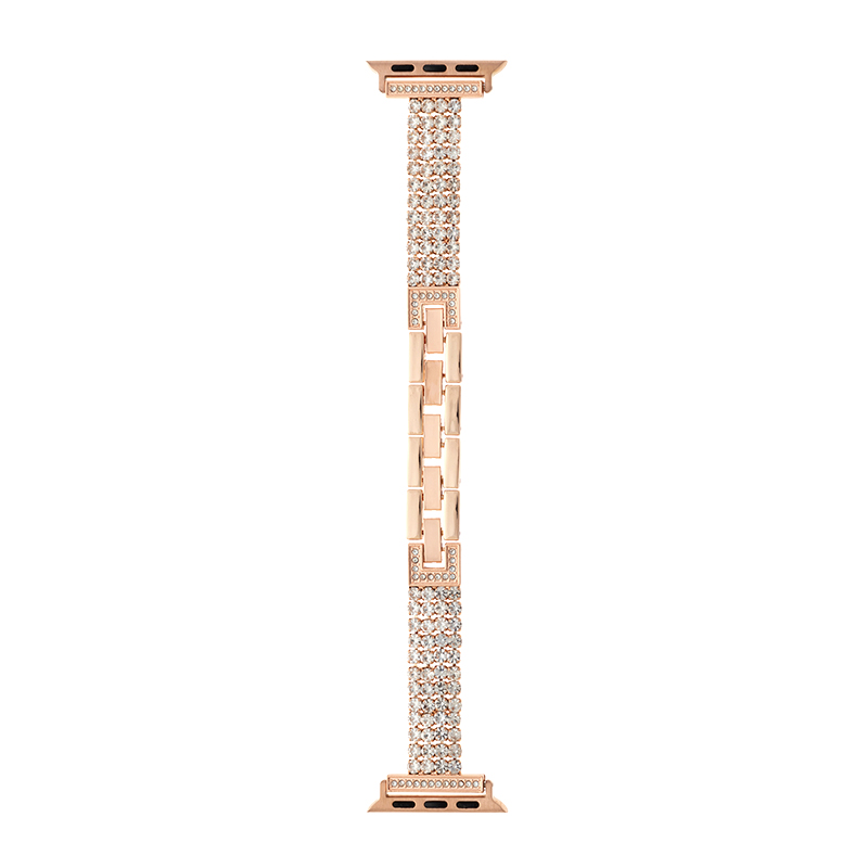 本体との一体感が魅力のメタル製Apple Watchバンド/ブレスレット感覚でつけられる二つ折れ式バックル/細身で派手すぎない、ストーンを並べた華やかなデザイン