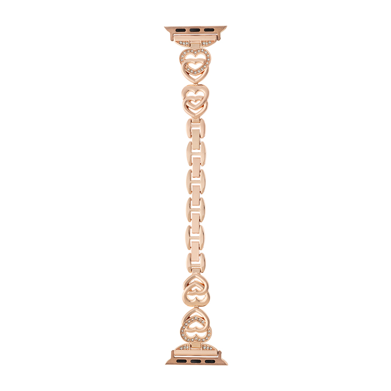 本体との一体感が魅力のメタル製Apple Watchバンド/ブレスレット感覚でつけられる二つ折れ式バックル/ハートモチーフがキュートな華奢見え細身バンド