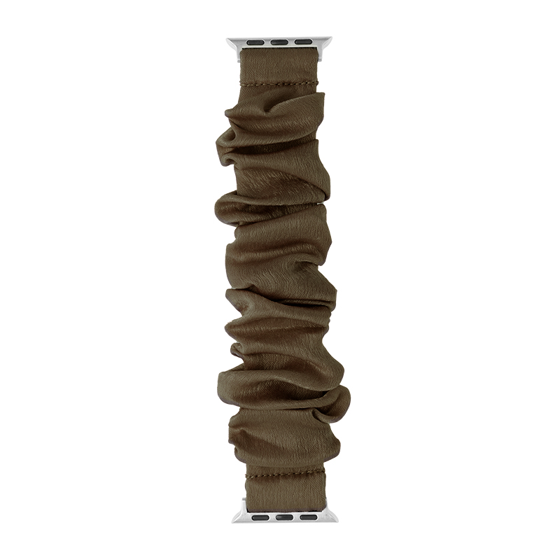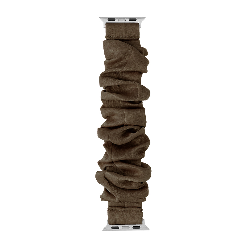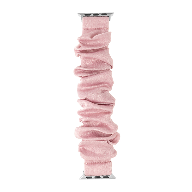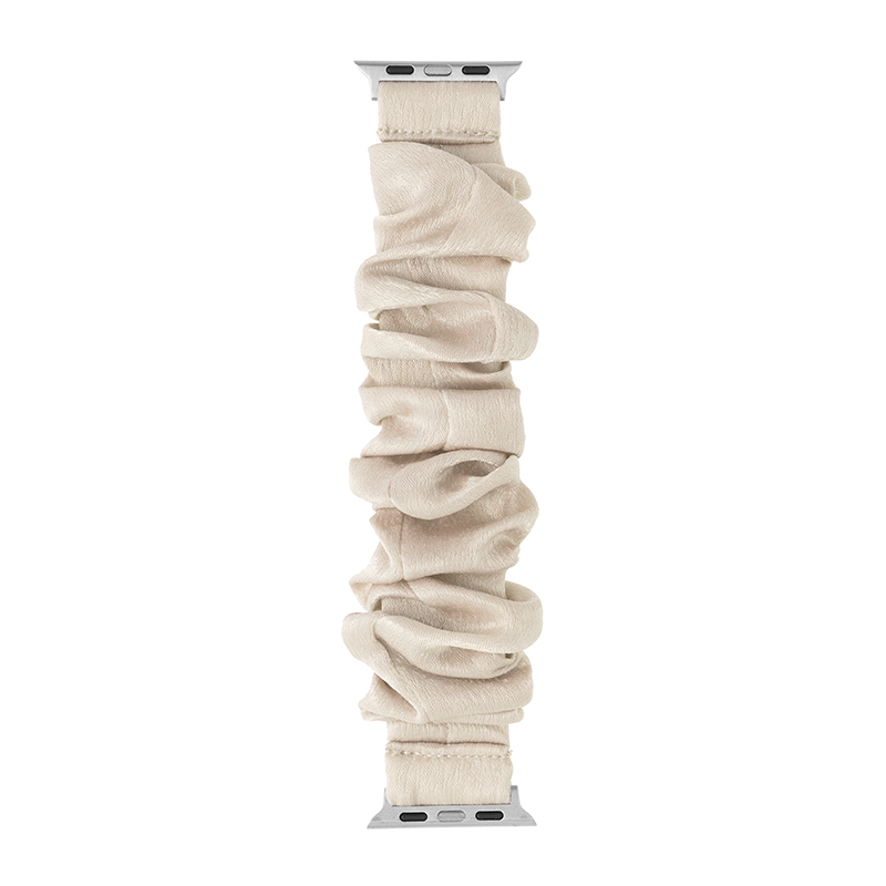 柔らかな雰囲気の布製Apple Watchバンド/シュシュ風仕様で簡単に着脱可能/ほどよい光沢感がフェミニンな装いにマッチ