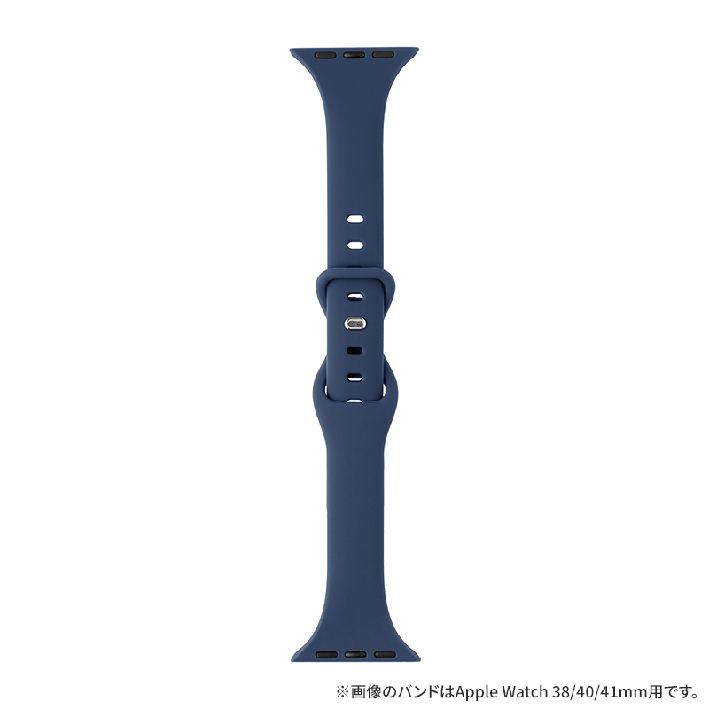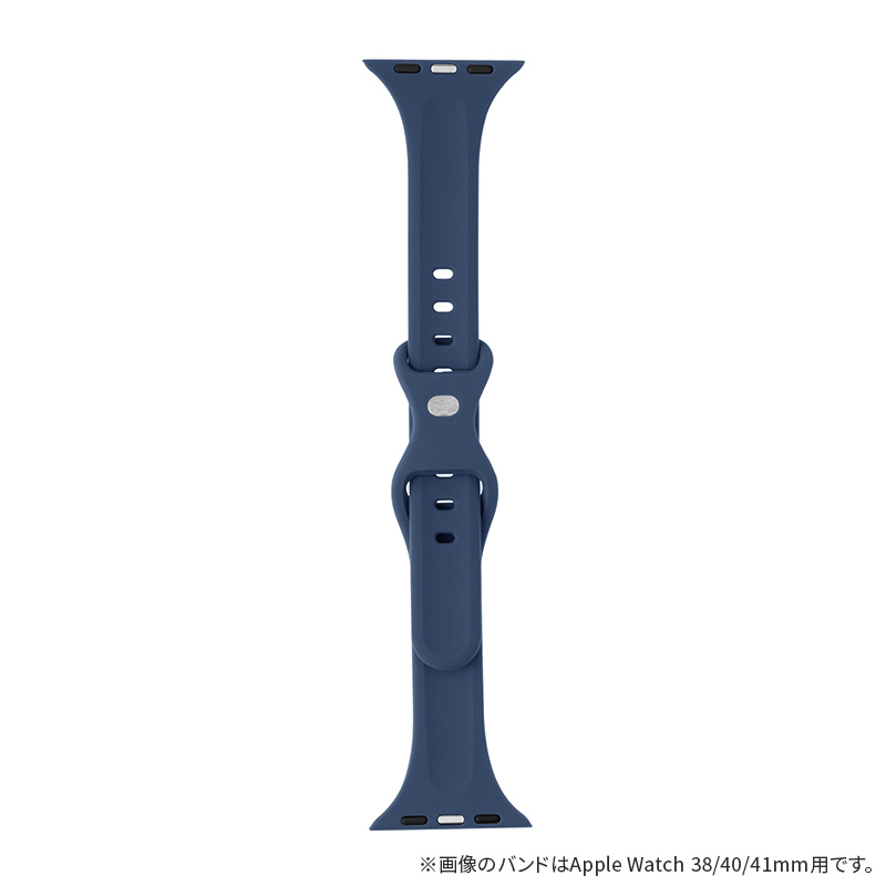 なめらかで肌触りの良い質感のApple Watchバンド/汗や水に強いシリコン製/ピン留め式で着脱しやすい/主張しすぎずコーディネートに合わせやすいスリムデザイン
