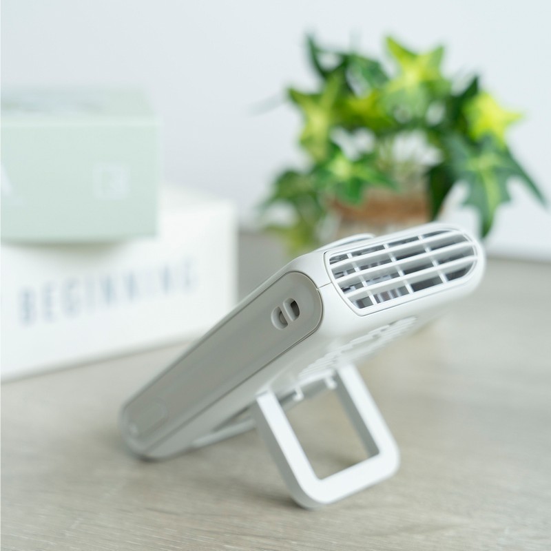 傘や日傘に取り付け可能/クリップつきでベルトファンとしても使用可能/デスクに置いても使えるスタンド機能つき/3段階の風量調整/ストラップつきで首掛け可能