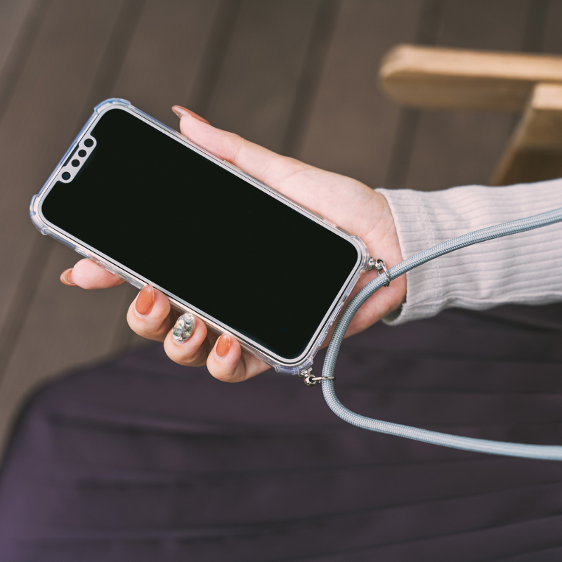 【耐衝撃】 柔らかく耐衝撃性に優れたTPUケース/角に衝撃を吸収するエアクッションを搭載/柔軟性があり着脱が簡単/マイクロドット加工で端末に張り付きにくい/落下防止に便利な「ショルダーストラップ」つき