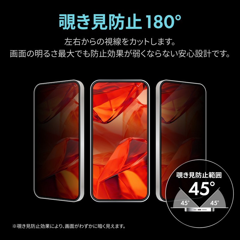iPhone 17/iPhone 17 Pro/iPhone 16 Pro ガラスフィルム「GLASS PREMIUM FILM」 覗き見防止180°