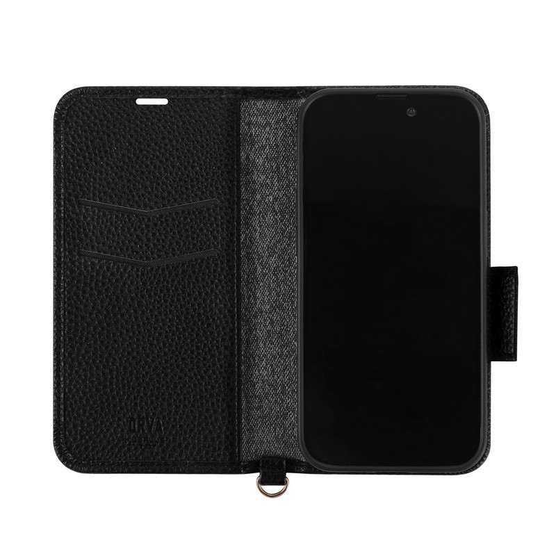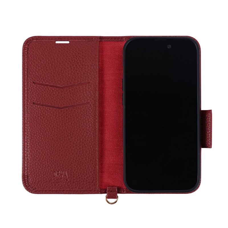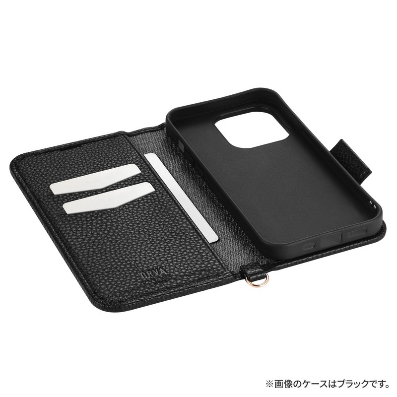 iPhone 14 Pro 本革風レザーフラップケース 「ORVA」 (ハンドストラップ付属)