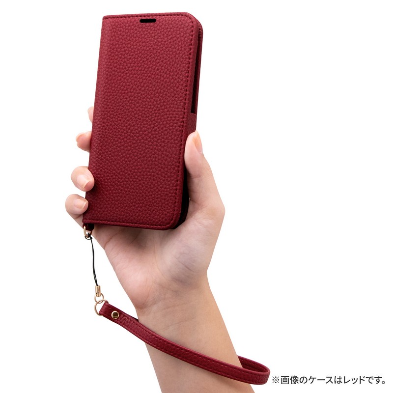 本革のような風合いのレザーと丁寧な縫製が格調高さを醸し出すフラップケース/便利なカード収納(2枚)+大型ポケット/ピタッと固定できるマグネット仕様/耐衝撃TPUケース採用/落下防止に最適な「ハンドストラップ」付属