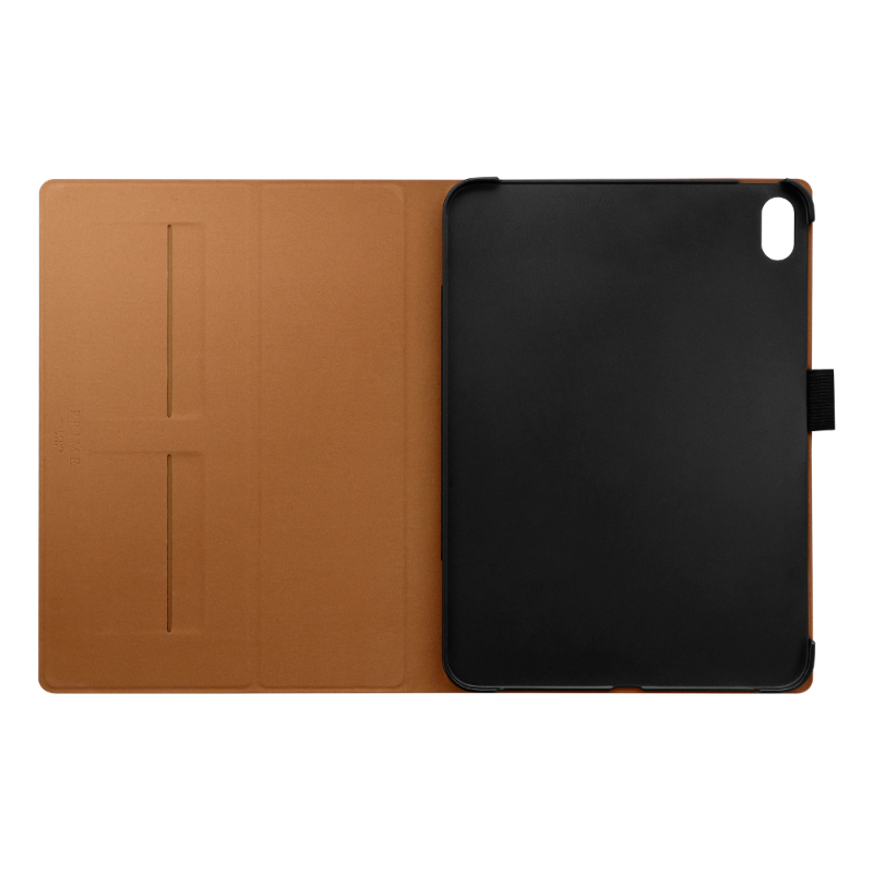 上質なPUレザー生地を贅沢に使用したフラップケース/動画視聴・タイピングに最適な2つの角度のスタンド機能/収納しやすいゴム製Pencilホルダー搭載/名刺サイズ対応のカード収納ポケット付き(2枚)/画面を優しく守る、柔らかマイクロファイバー使用