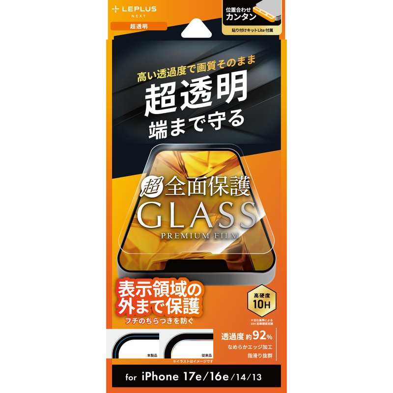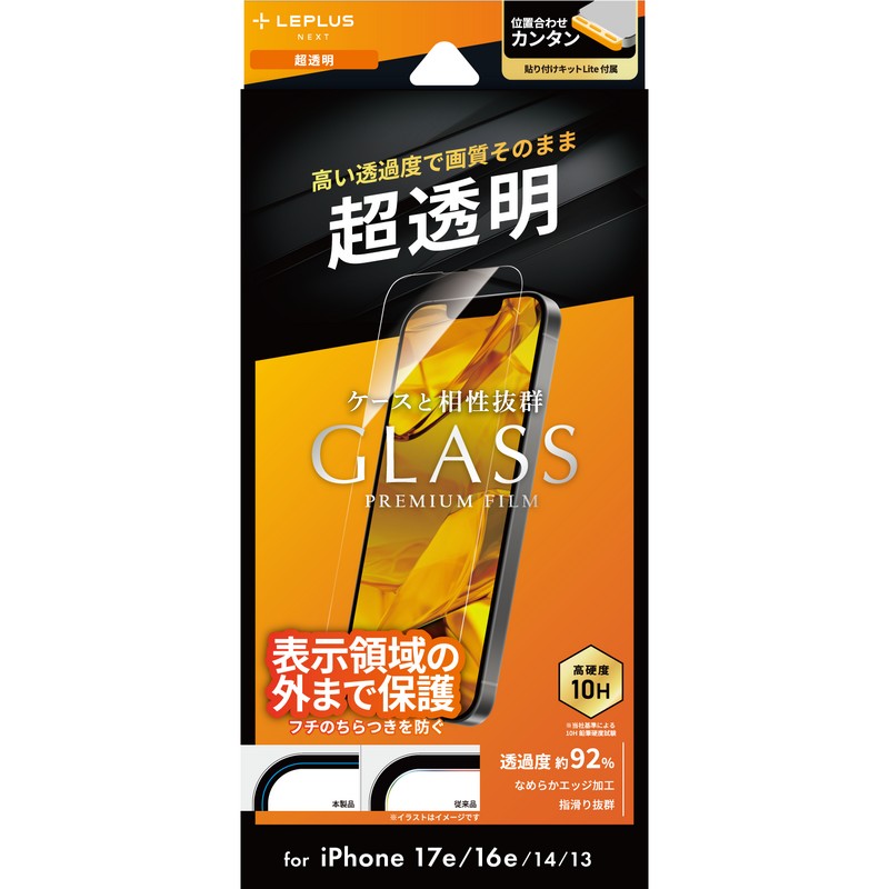 iPhone 17e/iPhone 16e/iPhone 14/iPhone 13 ガラスフィルム「GLASS PREMIUM FILM Lite」 超透明