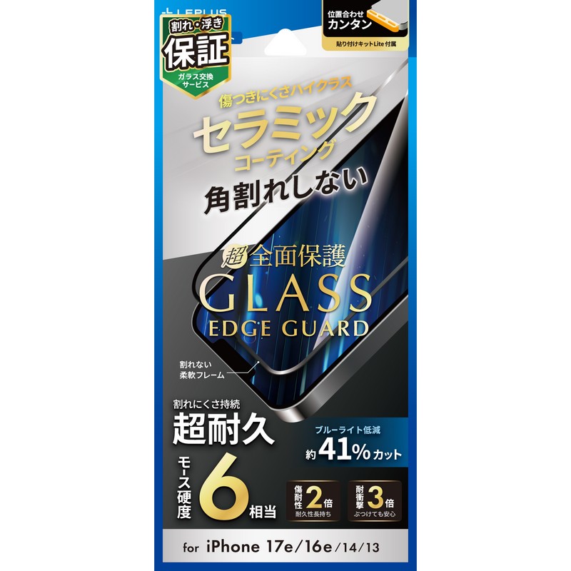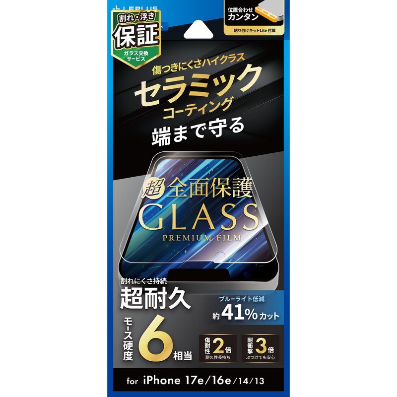 iPhone 17e/iPhone 16e/iPhone 14/iPhone 13 ガラスフィルム「GLASS PREMIUM FILM Lite」 セラミックコーティング 全面保護 ブルーライトカット