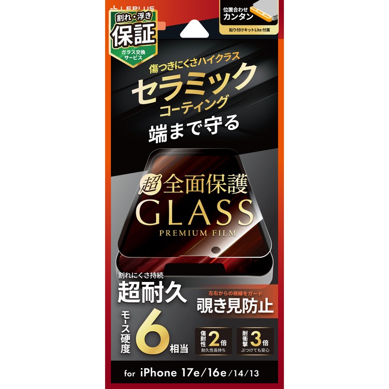 iPhone 17e/iPhone 16e/iPhone 14/iPhone 13 ガラスフィルム「GLASS PREMIUM FILM Lite」 セラミックコーティング 全面保護 覗き見防止180°