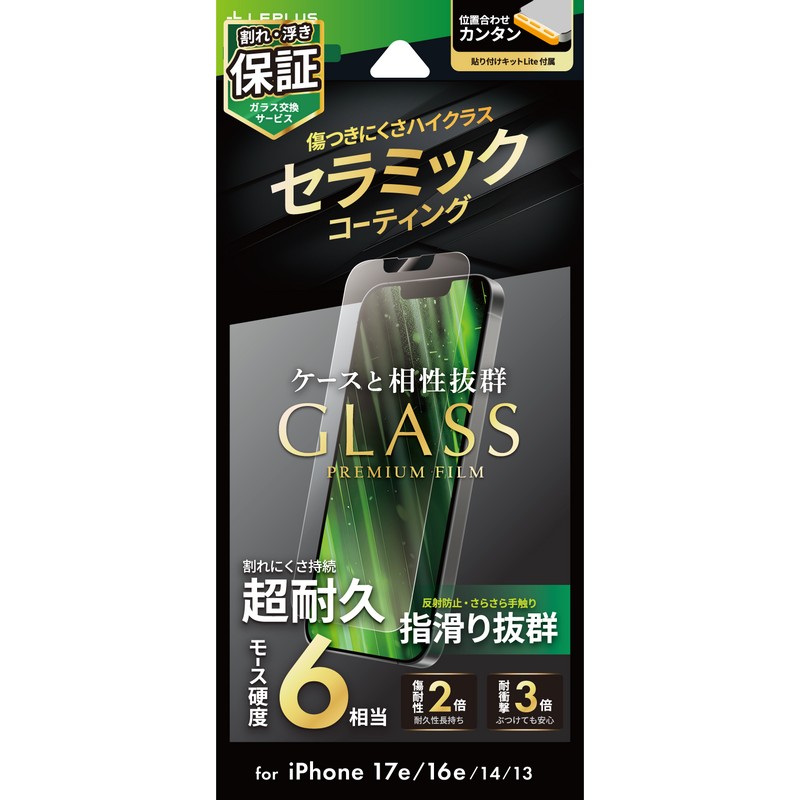 iPhone 17e/iPhone 16e/iPhone 14/iPhone 13 ガラスフィルム「GLASS PREMIUM FILM Lite」 セラミックコーティング 反射防止