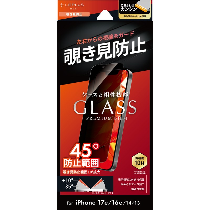 iPhone 17e/iPhone 16e/iPhone 14/iPhone 13 ガラスフィルム「GLASS PREMIUM FILM Lite」 覗き見防止180°