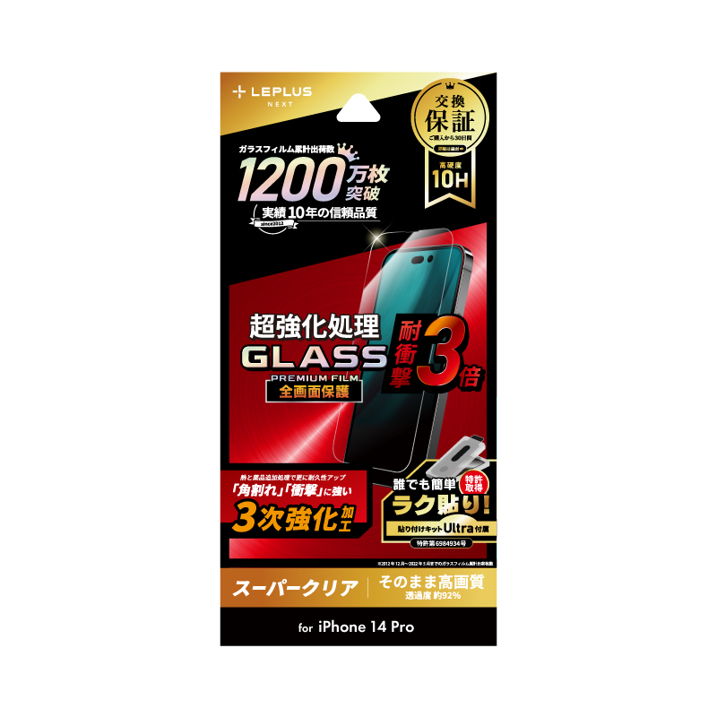 iPhone 14 Pro ガラスフィルム「GLASS PREMIUM FILM」 全画面保護 3次強化 スーパークリア