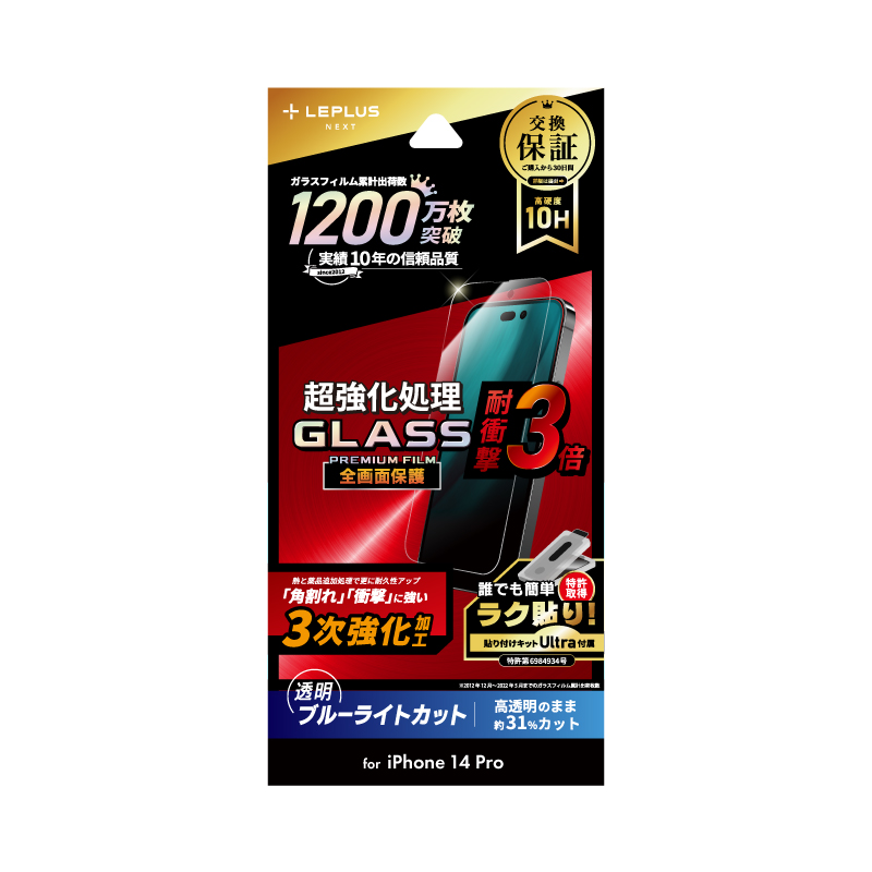 iPhone 14 Pro ガラスフィルム「GLASS PREMIUM FILM」 全画面保護 3次強化 ブルーライトカット