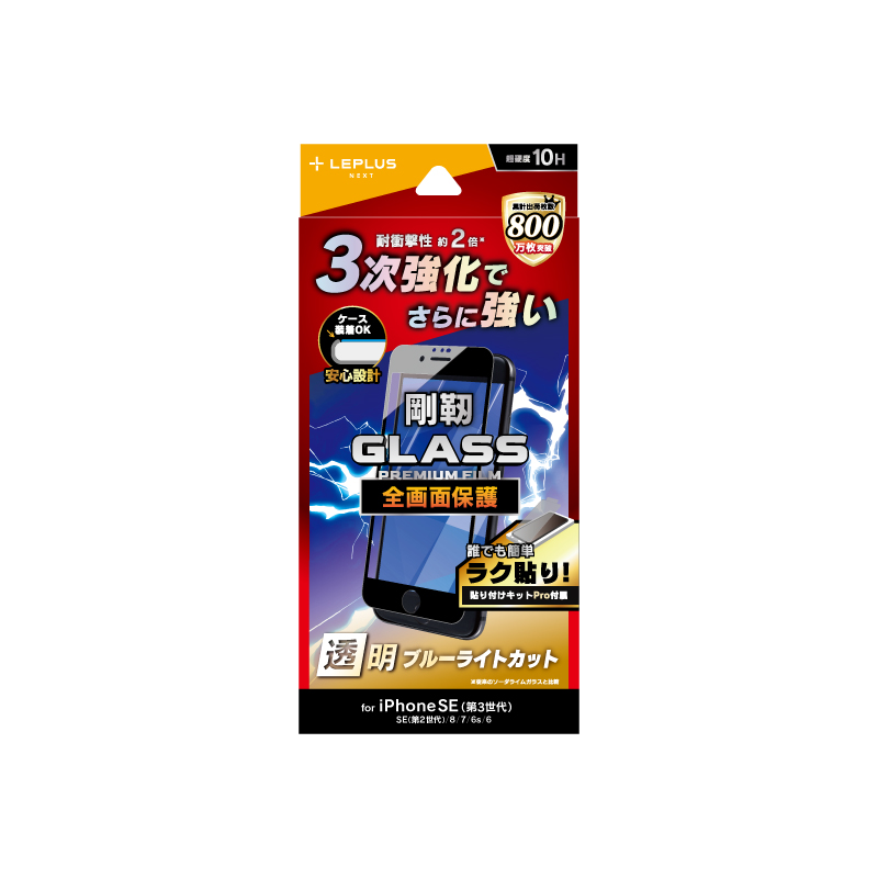 iPhone SE (第3世代)/SE (第2世代)/8/7/6s/6 ガラスフィルム「GLASS PREMIUM FILM 剛靭」 全画面保護 ブルーライトカット