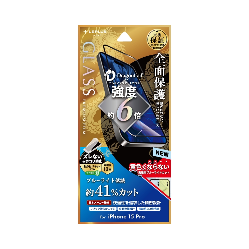 iPhone 15 Pro ガラスフィルム 「GLASS PREMIUM FILM」 ドラゴントレイル ブルーライトカット