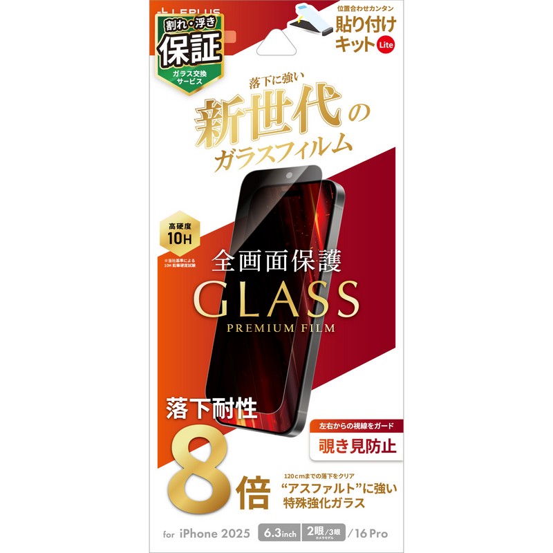 iPhone 17/iPhone 17 Pro/iPhone 16 Pro ガラスフィルム「GLASS PREMIUM FILM Lite」新世代ガラス 覗き見防止180°