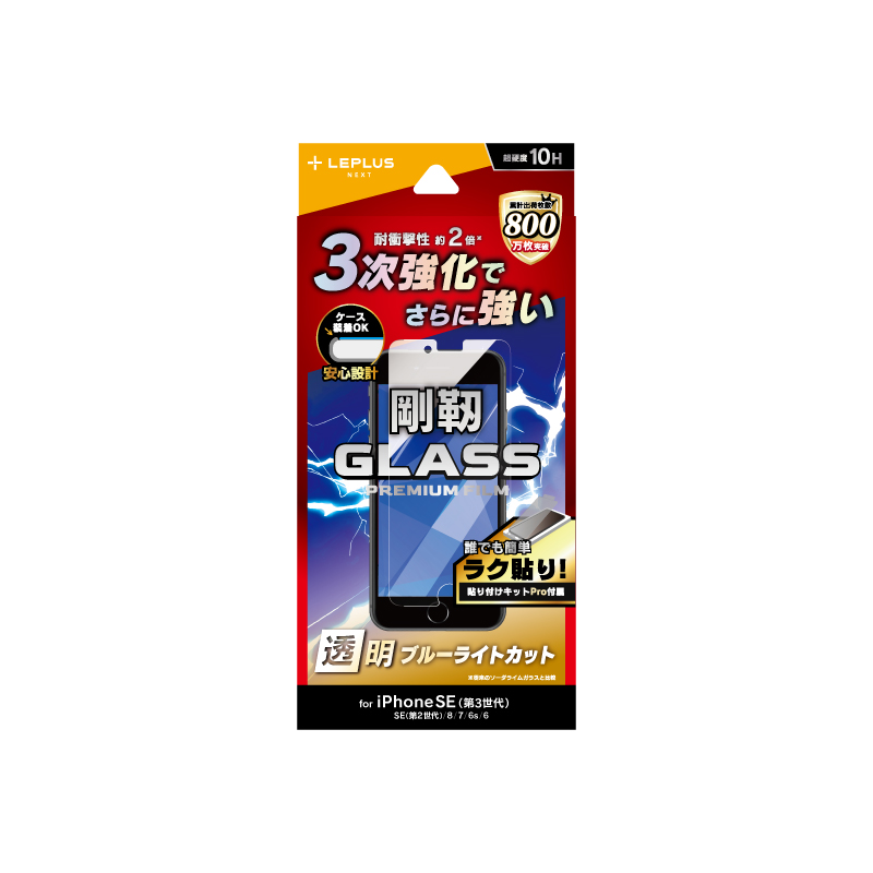iPhone SE (第3世代)/SE (第2世代)/8/7/6s/6 ガラスフィルム「GLASS PREMIUM FILM 剛靭」 ブルーライトカット