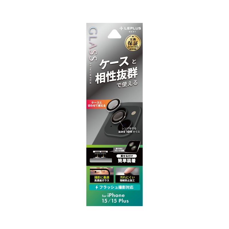 iPhone 15/iPhone 15 Plus レンズ保護ガラスフィルム 「GLASS PREMIUM FILM」 レンズ一体型 超高透過95%